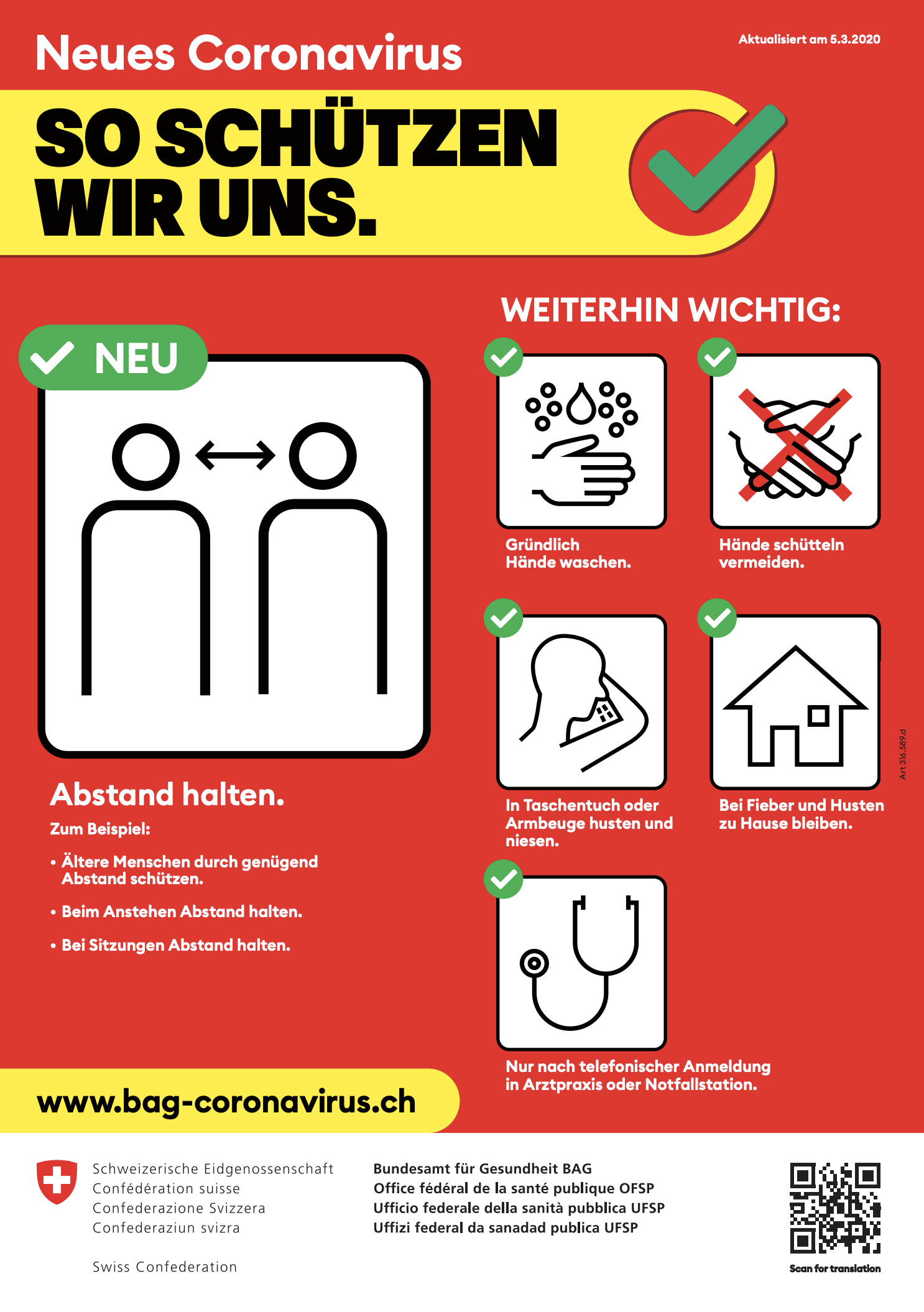 - Reduzieren Sie Besuche in Alters- und Pflegeheimen sowie Spitälern auf ein Minimum.