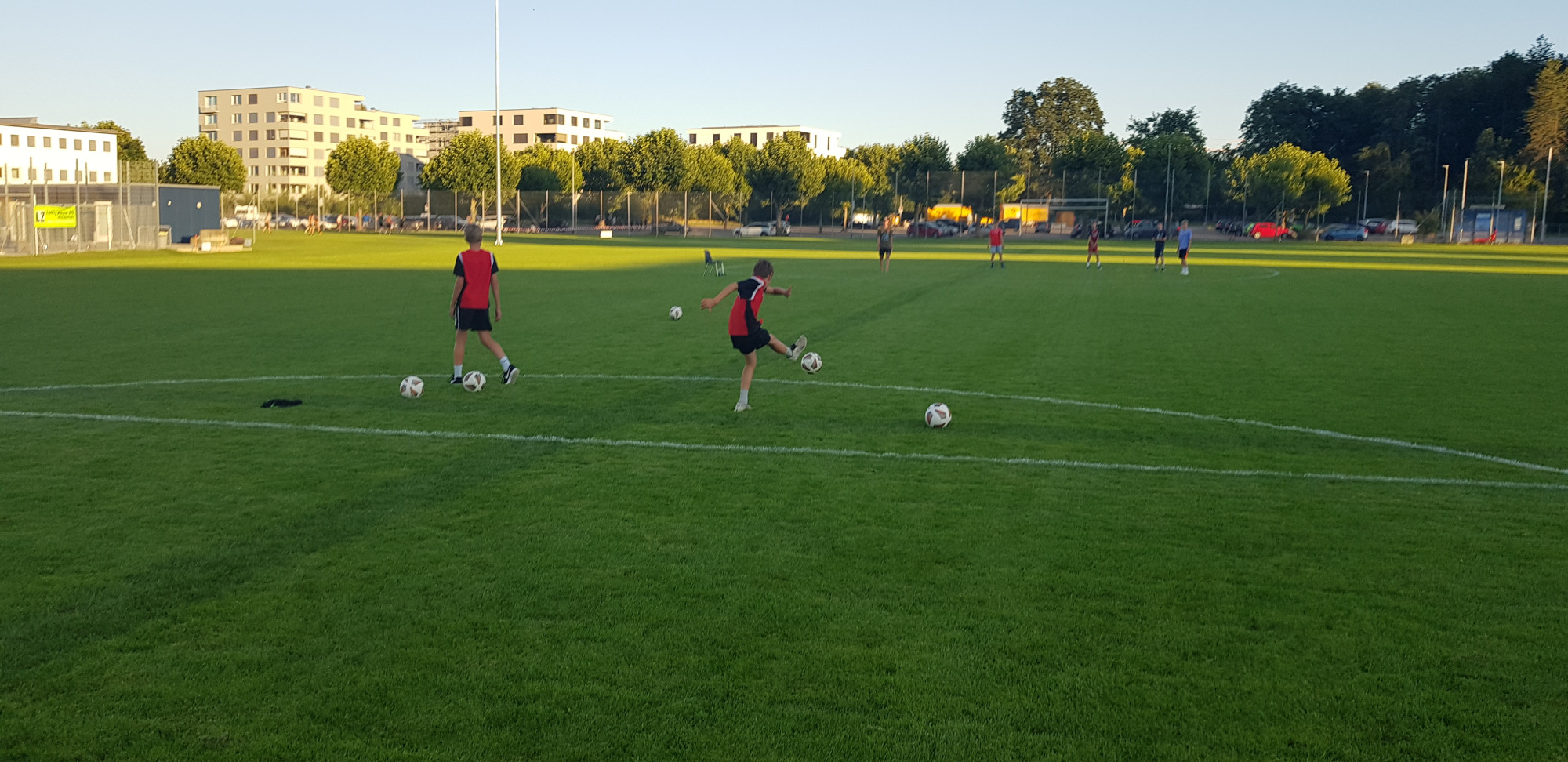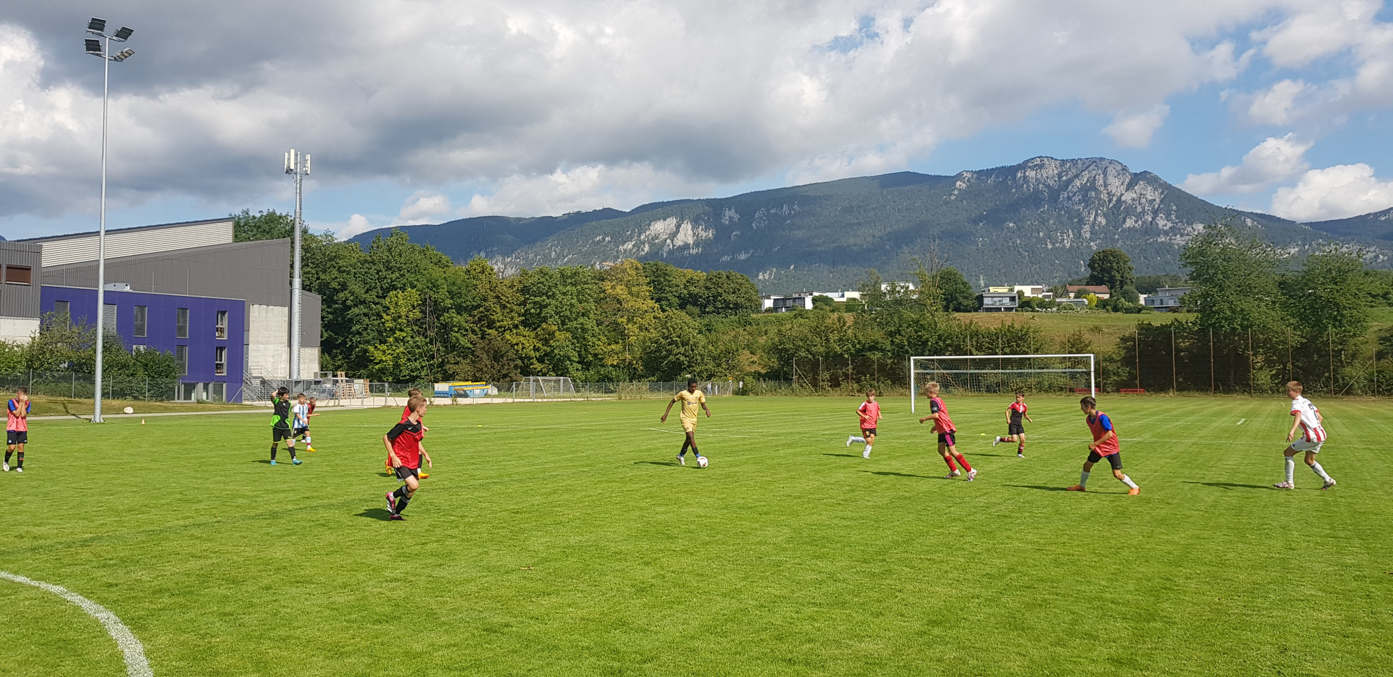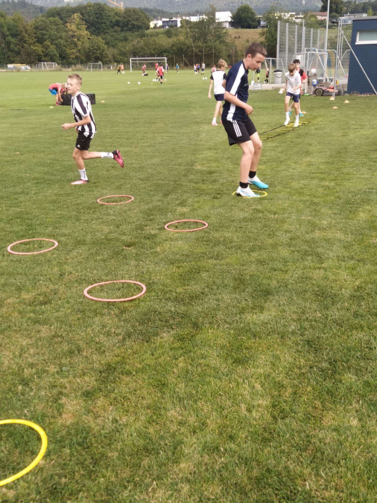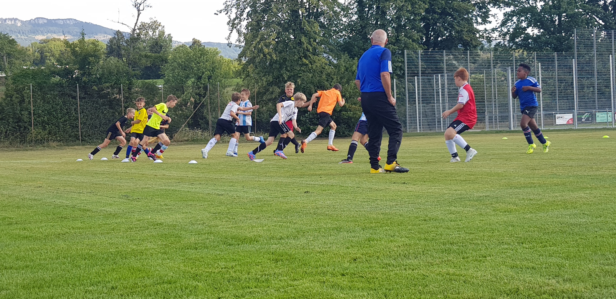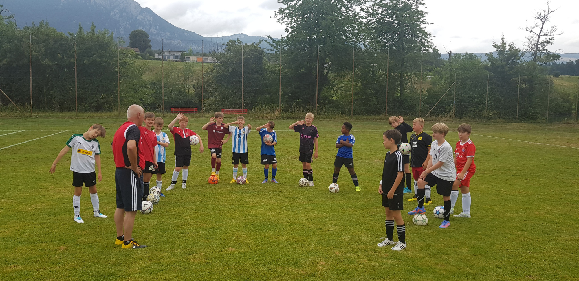 Für die Woche waren insgesamt 7 Trainings und ein Turnier (Freitag) geplant. Bei perfekten (Trainings-) Temperaturen wurde vormittags in drei Gruppen trainiert, wobei eine Gruppe durch die Torhüter gebildet wurde. Nachmittags waren dann zwei (grössere) Trainingsgruppen im Einsatz. Auf dem Platz wurde vor allem an der Technik gefeilt, viele Spielformen absolviert und die eine oder andere Spassübung durfte auch nicht fehlen. Vom Jüngsten (Jahrgang 2013) bis zum Ältesten (Jahrgang 2007) sah man der ganzen Truppe an, dass sie mit Spass, Motivation und Einsatz dabei waren. Bei der älteren Trainingsgruppe durfte natürlich auch das «Mentalitätstraining» beim Schleifer H. S. vom Schattdorfer Hausberg nicht fehlen. Leider konnten zwei Teilnehmer das Lager nicht wie gewünscht beenden. Ein Bienenstich am Fuss wie auch eine starke Knochenprellung liessen weitere Trainings nicht zu.