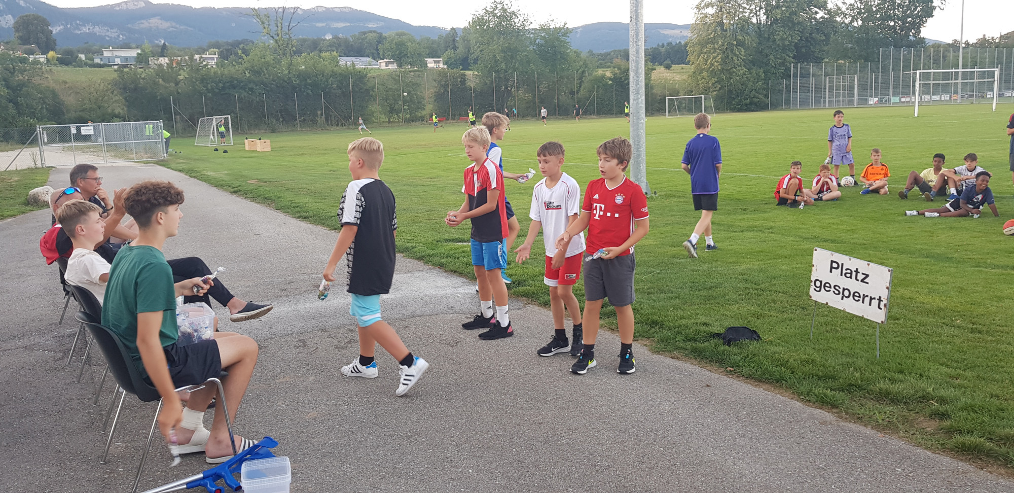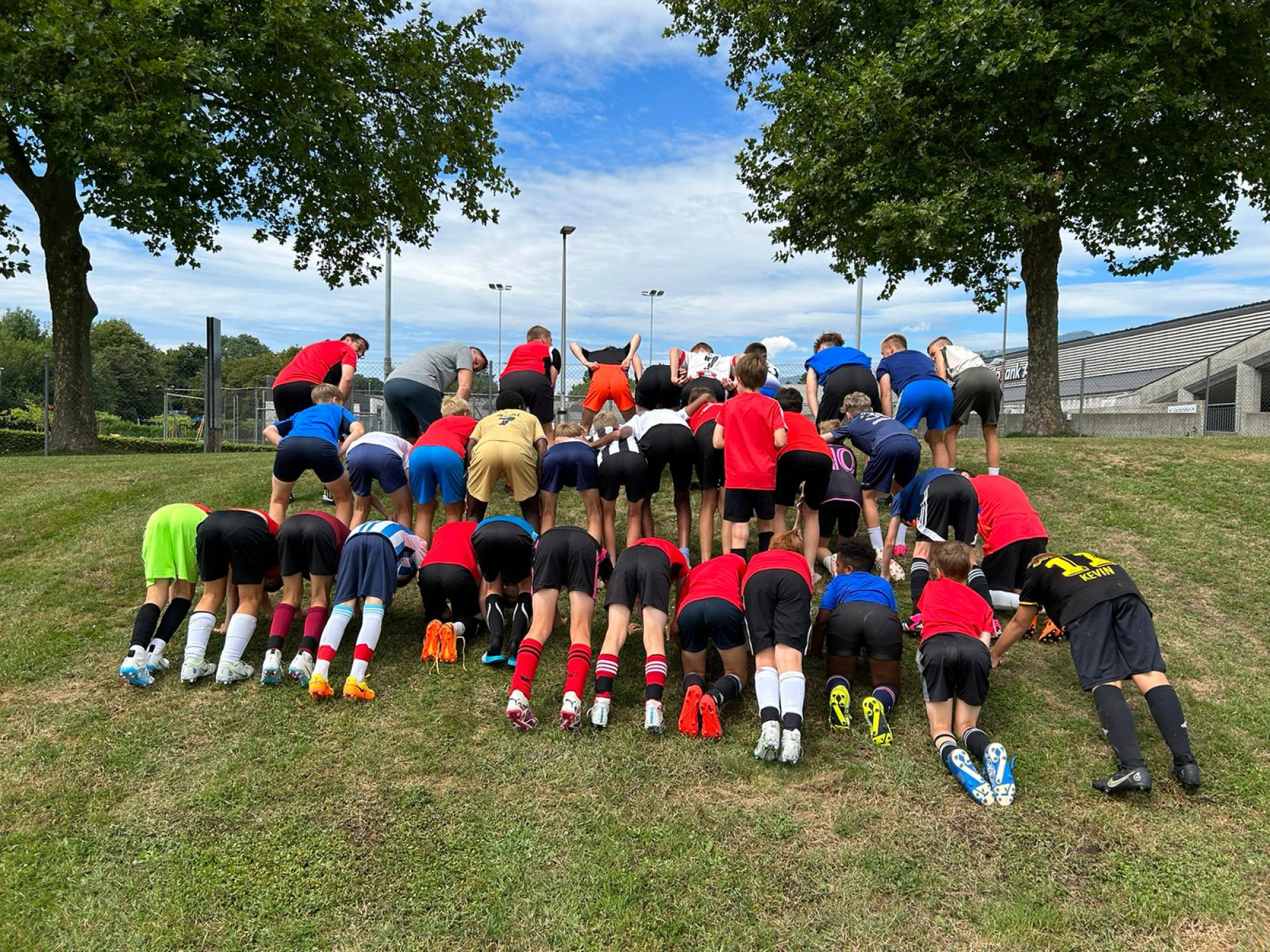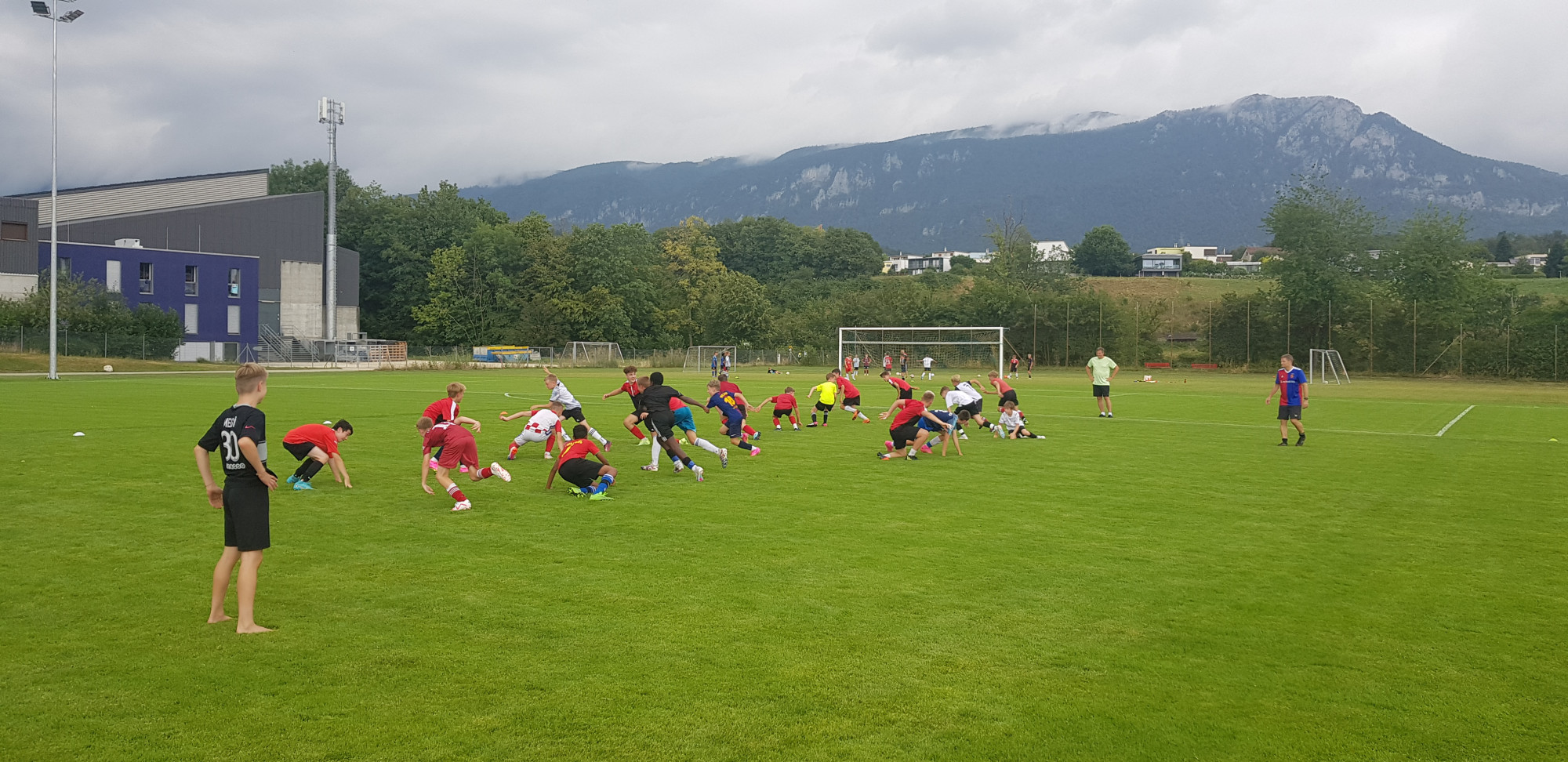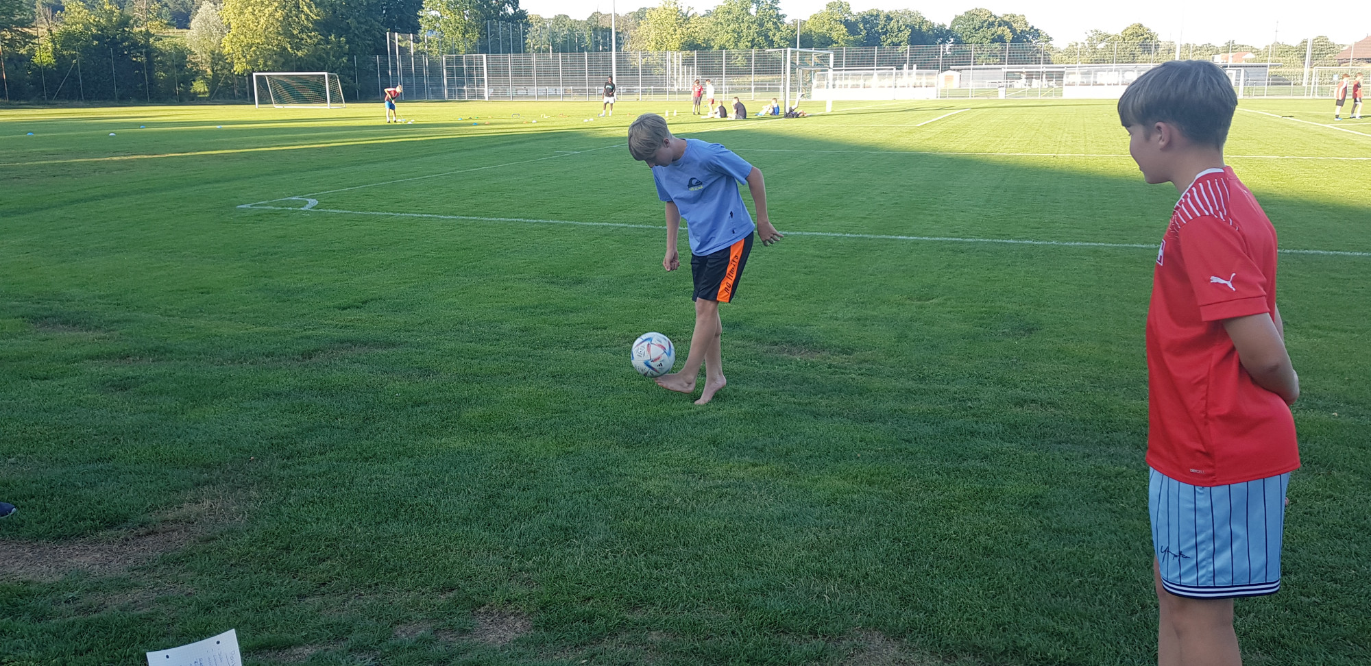 Für die Woche waren insgesamt 7 Trainings und ein Turnier (Freitag) geplant. Bei perfekten (Trainings-) Temperaturen wurde vormittags in drei Gruppen trainiert, wobei eine Gruppe durch die Torhüter gebildet wurde. Nachmittags waren dann zwei (grössere) Trainingsgruppen im Einsatz. Auf dem Platz wurde vor allem an der Technik gefeilt, viele Spielformen absolviert und die eine oder andere Spassübung durfte auch nicht fehlen. Vom Jüngsten (Jahrgang 2013) bis zum Ältesten (Jahrgang 2007) sah man der ganzen Truppe an, dass sie mit Spass, Motivation und Einsatz dabei waren. Bei der älteren Trainingsgruppe durfte natürlich auch das «Mentalitätstraining» beim Schleifer H. S. vom Schattdorfer Hausberg nicht fehlen. Leider konnten zwei Teilnehmer das Lager nicht wie gewünscht beenden. Ein Bienenstich am Fuss wie auch eine starke Knochenprellung liessen weitere Trainings nicht zu.