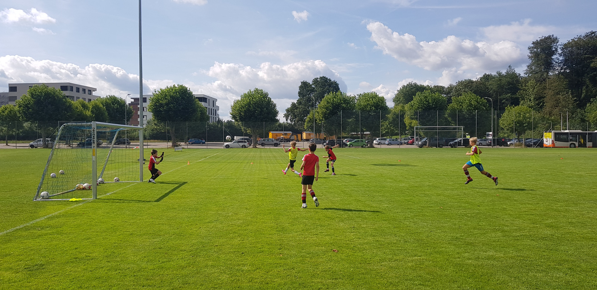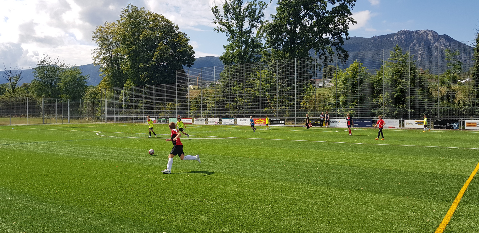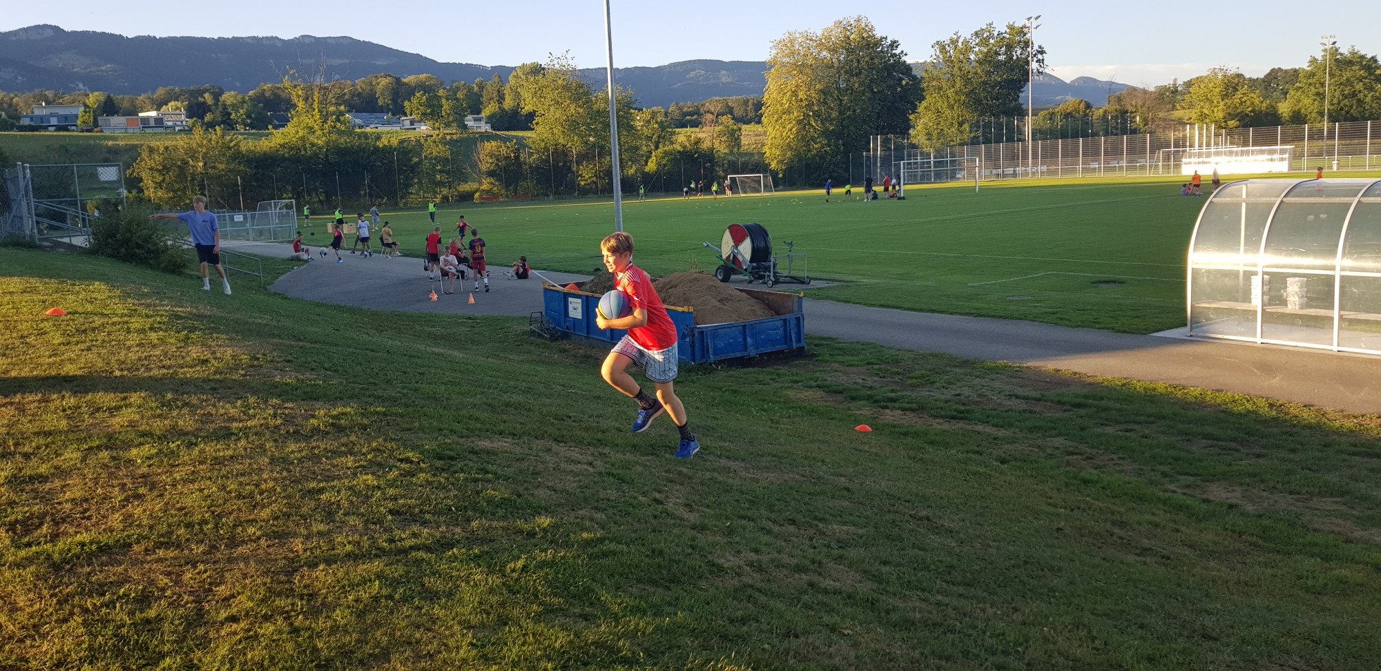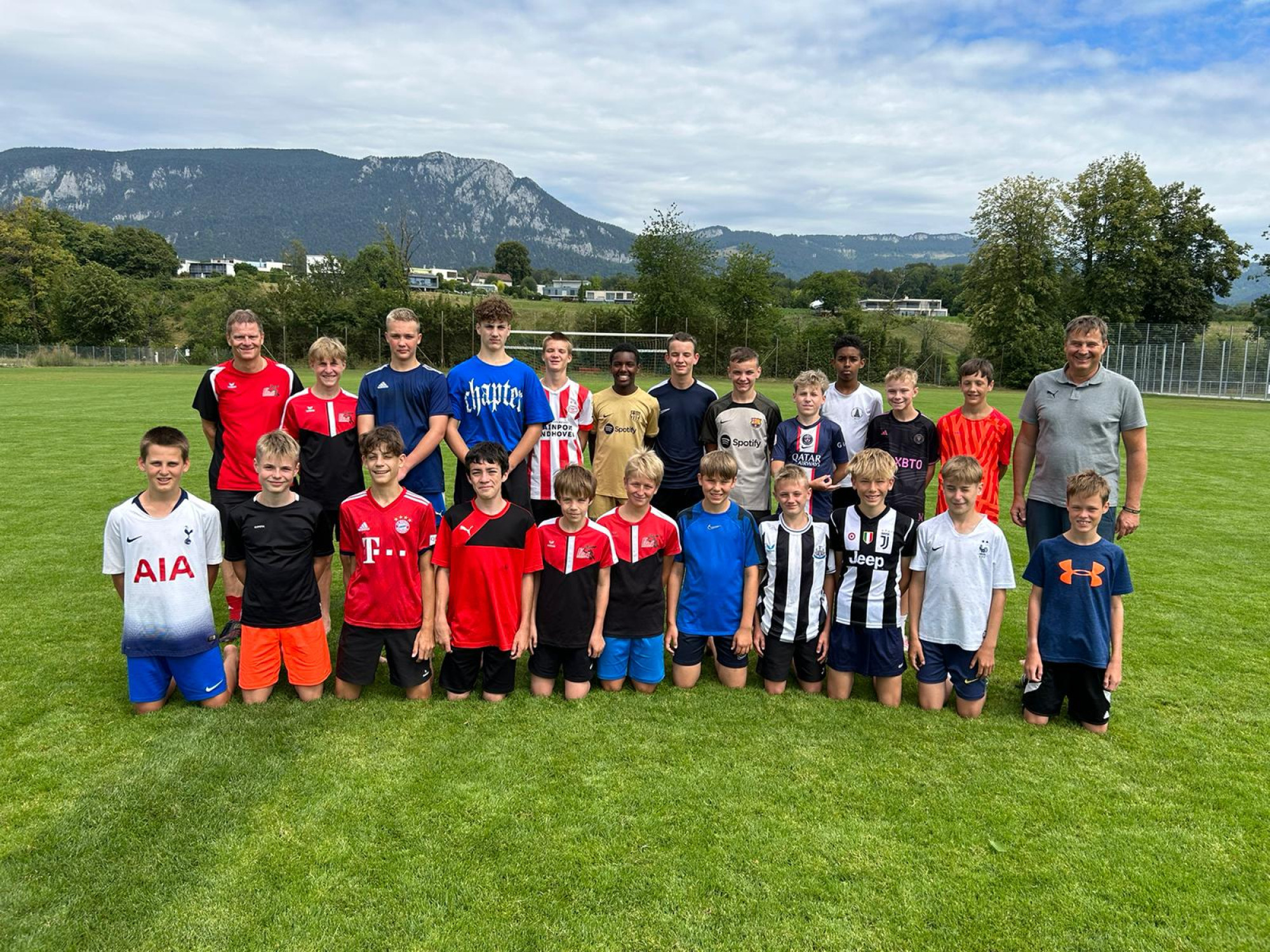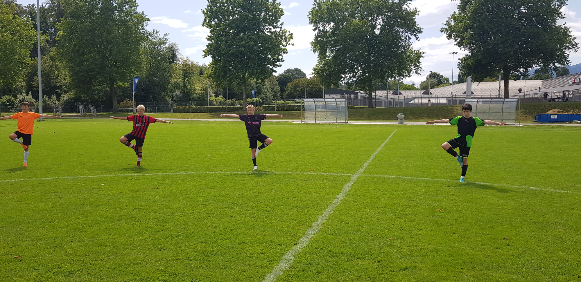 Für die Woche waren insgesamt 7 Trainings und ein Turnier (Freitag) geplant. Bei perfekten (Trainings-) Temperaturen wurde vormittags in drei Gruppen trainiert, wobei eine Gruppe durch die Torhüter gebildet wurde. Nachmittags waren dann zwei (grössere) Trainingsgruppen im Einsatz. Auf dem Platz wurde vor allem an der Technik gefeilt, viele Spielformen absolviert und die eine oder andere Spassübung durfte auch nicht fehlen. Vom Jüngsten (Jahrgang 2013) bis zum Ältesten (Jahrgang 2007) sah man der ganzen Truppe an, dass sie mit Spass, Motivation und Einsatz dabei waren. Bei der älteren Trainingsgruppe durfte natürlich auch das «Mentalitätstraining» beim Schleifer H. S. vom Schattdorfer Hausberg nicht fehlen. Leider konnten zwei Teilnehmer das Lager nicht wie gewünscht beenden. Ein Bienenstich am Fuss wie auch eine starke Knochenprellung liessen weitere Trainings nicht zu.