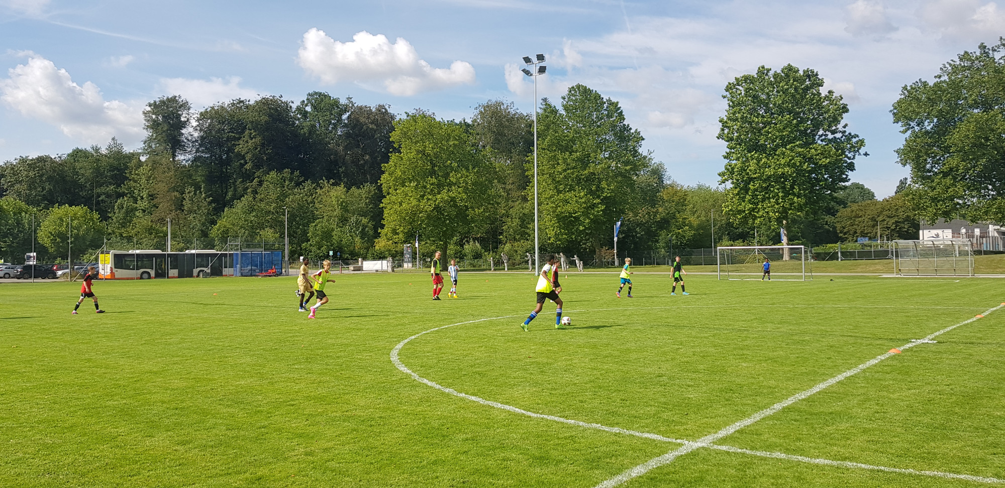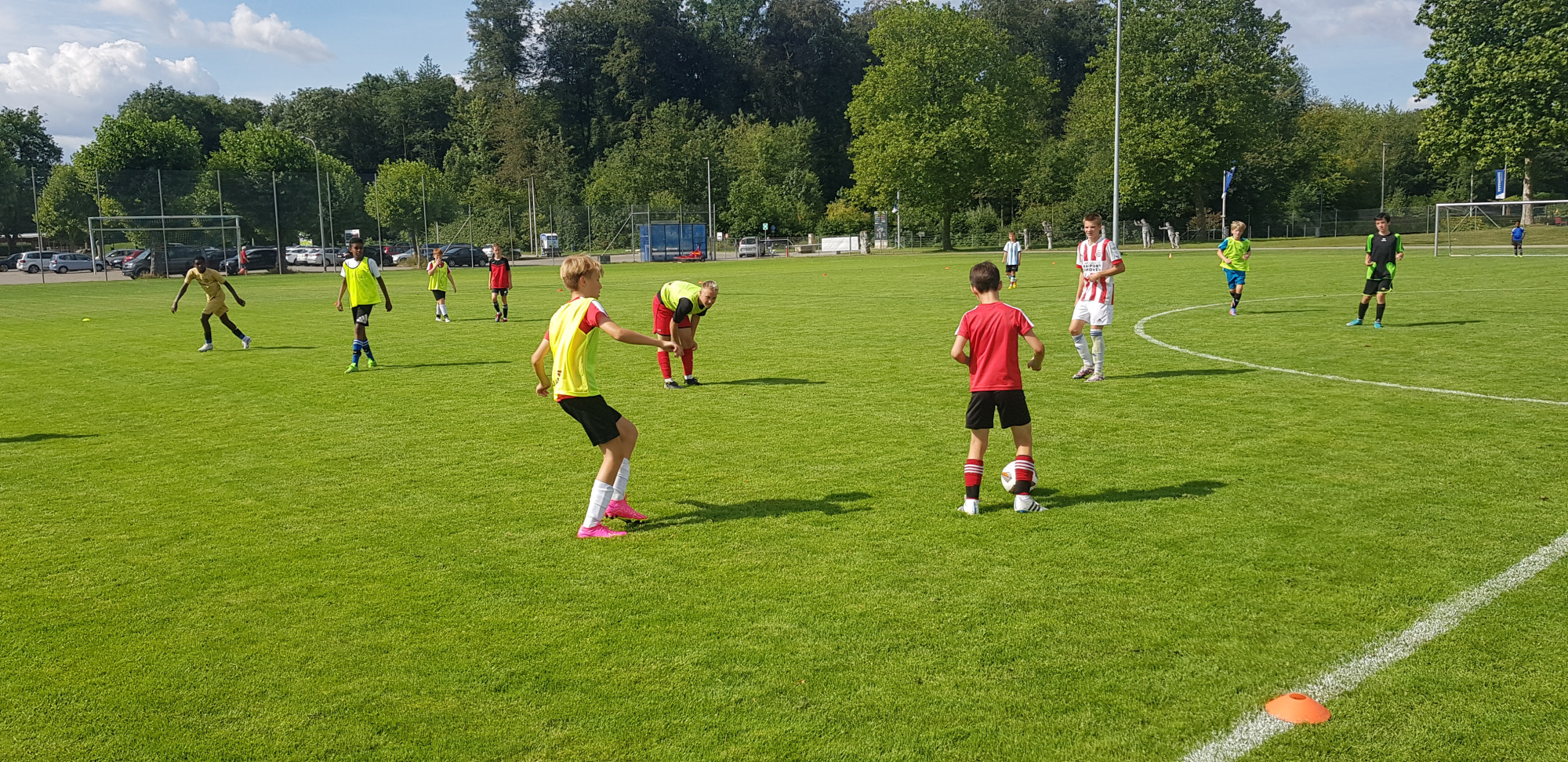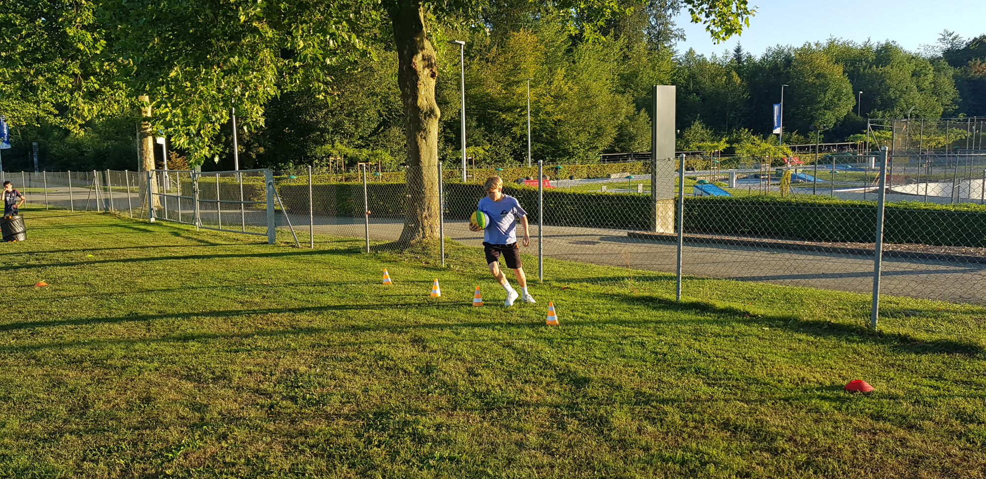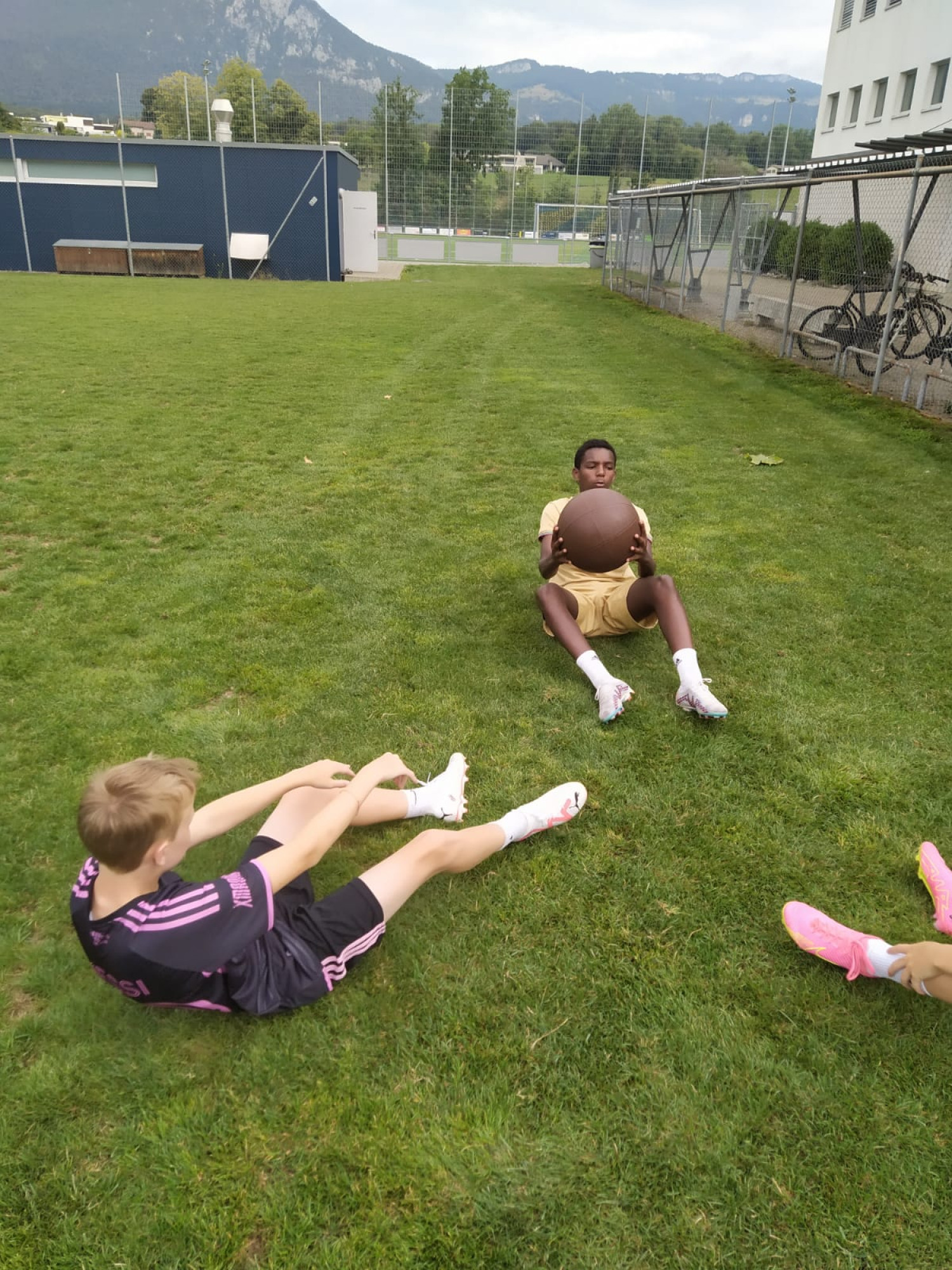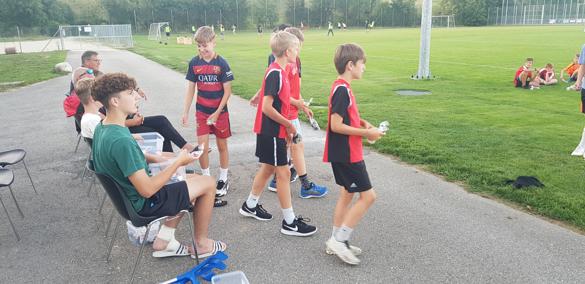 Für die Woche waren insgesamt 7 Trainings und ein Turnier (Freitag) geplant. Bei perfekten (Trainings-) Temperaturen wurde vormittags in drei Gruppen trainiert, wobei eine Gruppe durch die Torhüter gebildet wurde. Nachmittags waren dann zwei (grössere) Trainingsgruppen im Einsatz. Auf dem Platz wurde vor allem an der Technik gefeilt, viele Spielformen absolviert und die eine oder andere Spassübung durfte auch nicht fehlen. Vom Jüngsten (Jahrgang 2013) bis zum Ältesten (Jahrgang 2007) sah man der ganzen Truppe an, dass sie mit Spass, Motivation und Einsatz dabei waren. Bei der älteren Trainingsgruppe durfte natürlich auch das «Mentalitätstraining» beim Schleifer H. S. vom Schattdorfer Hausberg nicht fehlen. Leider konnten zwei Teilnehmer das Lager nicht wie gewünscht beenden. Ein Bienenstich am Fuss wie auch eine starke Knochenprellung liessen weitere Trainings nicht zu.