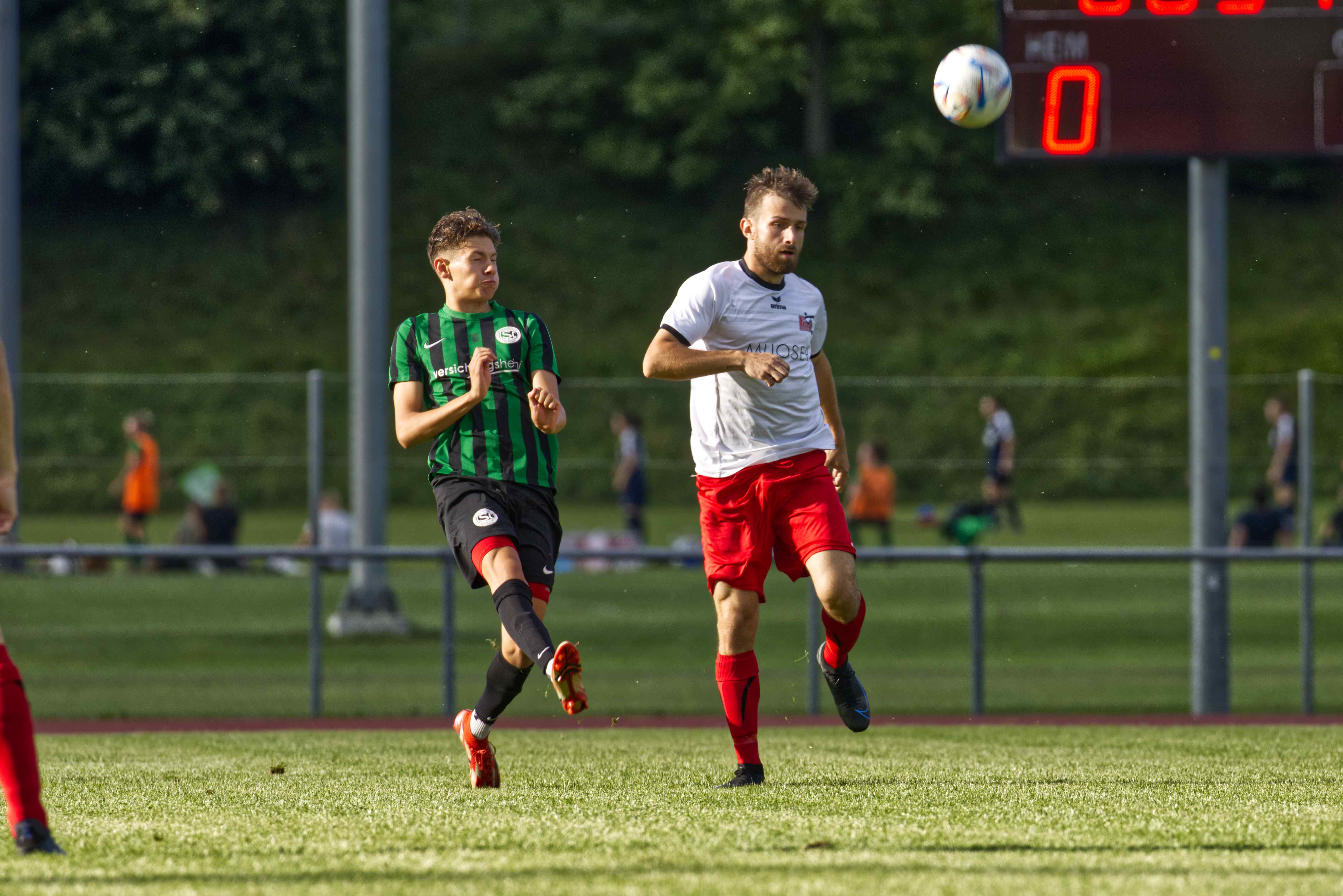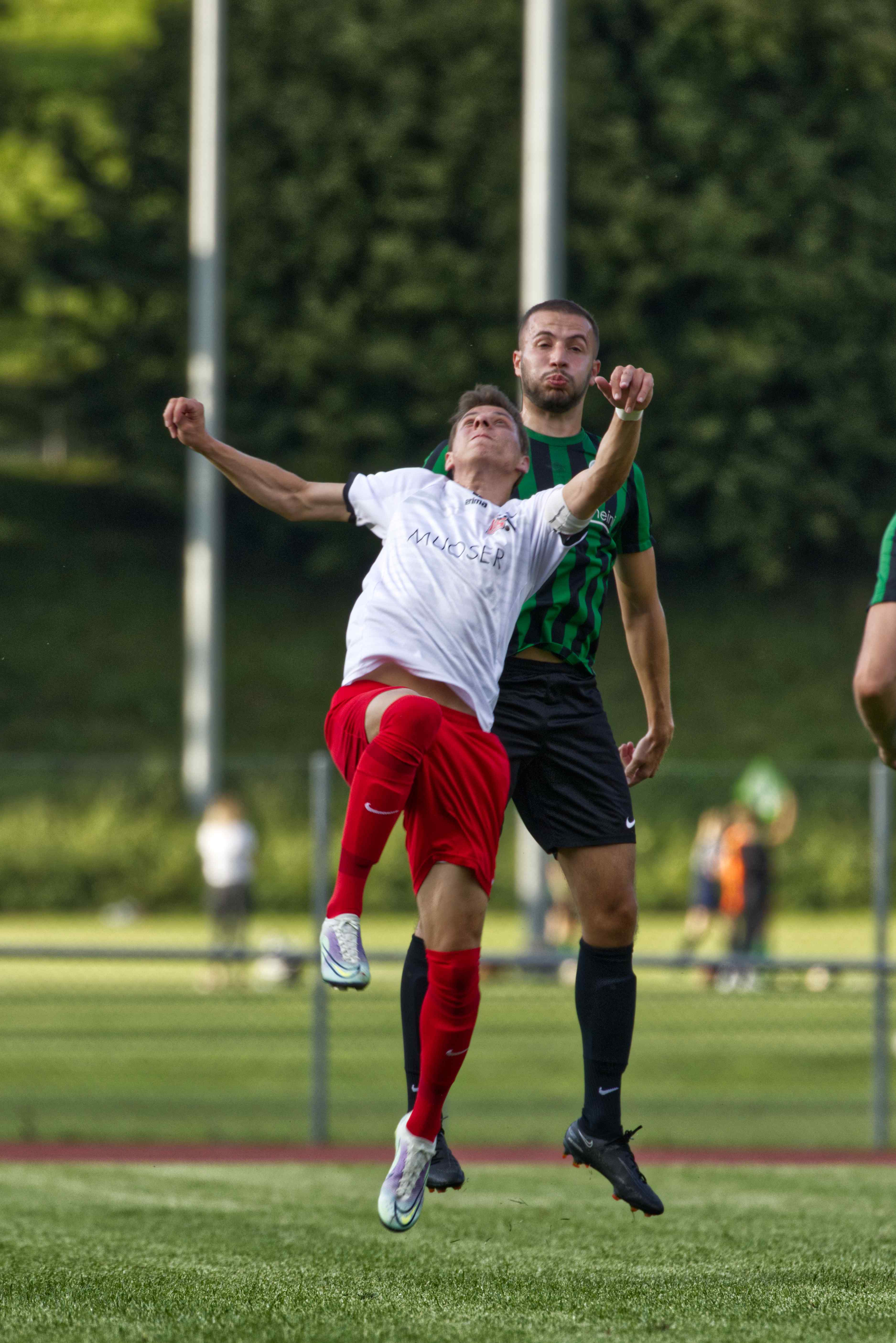 Trotz der brütenden Hitz entwickelte sich von Anfang an ein gutes und schnelles Spiel. Die Schattdorfer Offensive übte insbesondere über die Flügel immer wieder Druck auf die gegnerische Verteidigung aus. Nach einem Notbremse Foul in der 20. Spielminute musste einer der rot-schwarzen früher unter die Dusche, was lange 70 Minuten in Unterzahl für sein Team bedeuteten. Das Team unter Augusto Barbaro und Roger Zurfluh liess sich davon aber nicht beirren und spielte weiterhin nach vorne. Nach gut 30 Minuten fiel nach einem schönen Angriff über die rechte Seite das verdiente 1:0 für das Heimteam. Es kam kurz vor der Pause noch besser als sich auf der linken Seite der Schattdorfer Stürmer durch die ganze Abwehr dribbelte und gekonnt zum 2:0 auflegte.